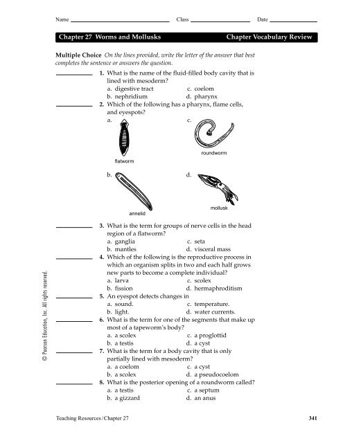 Chapter 27 Worms And Mollusks Chapter Vocabulary Review